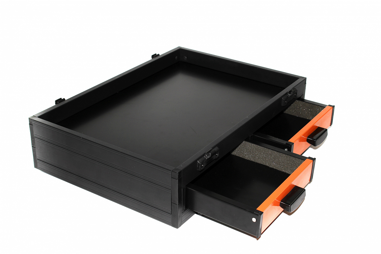 - Трей передний двойной 40 мм (выдвижные ящики 2 шт., высота модуля 90 мм)с передними выдвижными ящиками. Основное назначение данного элемента - место под хранения мотовил, оснастки и других рыболовных принадлежностей.