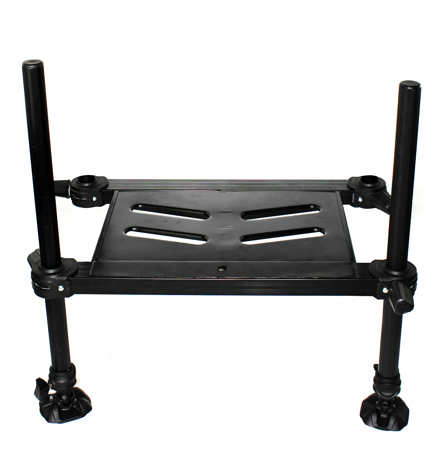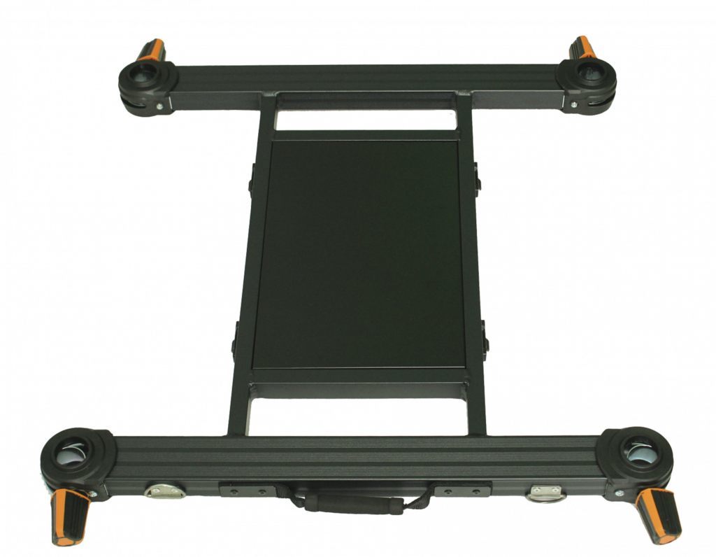 - Комплектация состоит из рамы (основания кресла-платформы), шести телескопических ног 70/115см, педаны, трея переднего (двойного) 90 мм с передними выдвижными ящиками, кресла поворотного, складного, сумки-органайзера для хранения мелочей и аксессуаров, четырехточечного ремня для транспортировки.