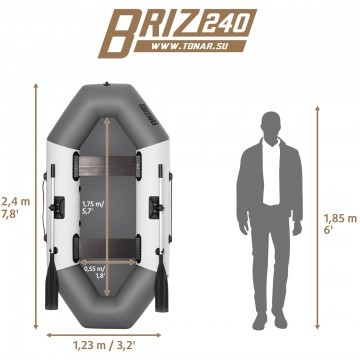 Двухместная лодка ПВХ лодка Тонар Бриз 240 бело-серая с баллоном разделенным на 2 независимых отсека, что гарантирует безопасность пребывания на воде.