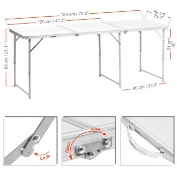 - Туристический складной стол, состоящий из 3 секций и отличающийся внушительными размерами: 180х60х70 см.