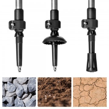 - Палки имеют надежный наконечник повышенной износостойкости для высокого уровня сцепления с любой поверхностью в условиях пересеченной местности, ледяных настилов и твёрдых каменных пород.